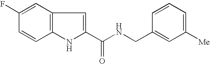 - HPTLICPSVHXXBY-UHFFFAOYSA-N CC1=CC(CNC(=O)C2=CC3=C(C=CC(F)=C3)N2)=CC=C1 Chemical compound CC1=CC(CNC(=O)C2=CC3=C(C=CC(F)=C3)N2)=CC=C1 HPTLICPSVHXXBY-UHFFFAOYSA-N 0.000 description 4