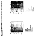 FIG. 14. 58P1D12 Expression in Normal and Patient Cancer Tissues. First strand cDNA was prepared from normal tissues (bladder, brain, heart, kidney, liver, lung, prostate, spleen, skeletal muscle, testis, pancreas, colon and stomach), and from pools of patient cancer specimens (prostate cancer pool, bladder cancer pool, lung cancer pool, ovary cancer pool, prostate cancer xenograft pool, bone and melanoma cancer pool, and cervical cancer pool). Normalization was performed by PCR using primers to actin. Semi-quantitative PCR, using primers to 58P1D12, was performed at 30 cycles of amplification. Results expression of 58P1D12 predominantly in testis amongst the normal tissues tested. 58P1D12 is also expressed in prostate cancer, bladder cancer, lung cancer, ovary cancer, prostate cancer xenograft, bone/melanoma cancer pool, and cervical cancer.