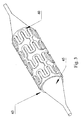 An alternative embodiment according to the invention is shown in FIG. 3. As discussed above with respect to FIG. 2, endoprosthesis 40 is mounted upon distal end 43 of balloon 45, which has been coated with photolithographic masking material in a pattern such radiation is selectively delivered to endoprosthesis 40, allowing curing in selected regions of endoprosthesis 40.