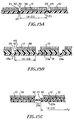 FIGS. 14A, 14B, and 14C are views of the structures resulting from the laminating process of FIG. 13 and using the substrate structure of FIGS. 7, 8, and 10 respectively.