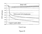 FIG. 29 shows the results of a cell adhesion assay using kidney tumor cells. Trypsin was added to six biosensor wells containing kidney tumor cells grown on the surface of the biosensor. Two wells were utilized as replicate samples for each of the three trypsin concentrations. Upon addition of the trypsin, a decrease in PWV is observed indicating the detachment of the cells from the surface of the sensor.