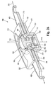 - FIG. 19 illustrates an exploded upper perspective view of the zipper pull tab lock shown in FIG. 17 .