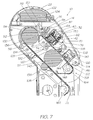 FIG. 7 shows a schematic, side sectioned view of a portion of the printer incorporating the print assembly;