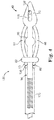 - FIG. 5 is a top view of flange 136 advanced distally to slide second ends 85 , 89 over waist 90 and laterally displace central portions 114 , 116 of arms 84 , 86 into their deployed positions.