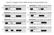 FIGS. 11A-11H show examples of tactic update messages in the strategy-progress area;