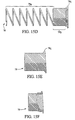 FIGS. 15A-15F are side views showing different compression spring penetration controls of various lengths and helical advance rates that affect needle penetration depth.