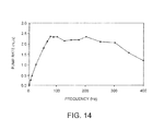 FIG. 14 is a graph showing experimentally achieved pumping rates vs. frequency for an embodiment of the peristaltic pumping system of FIG. 13.