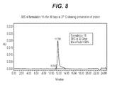 - FIG. 8 shows the stability of formulation 18 by SEC after 30 days at 37° C. The preservation of the protein is shown to be 98% by the main peak and the absence of additional peaks.