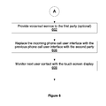 FIG. 6 is a flow diagram illustrating a process for declining an incoming call in accordance with some embodiments. In some embodiments, the device 100 simply terminates the incoming call from the first party. In some other embodiments, the device 100 optionally provides a voicemail service for the first party to leave a voicemail message for the user (602). In either case, the incoming phone call user interface 3000C is replaced with the previous phone call user interface 3000B (606). Accordingly, the user continues the phone call with the second party while the device 100 monitors the next user contact with the touch screen display (608). In some embodiments, substantially the same process described above applies when the user is having a conference call with multiple parties, an incoming call arrives, and the user declines the incoming call.