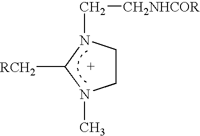 as well as dialkylmethylimidazolinium salts (Type C quats) of the formula: