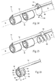 - FIG. 19 is a perspective view of the split casing component shown in FIG. 18 , and having electrodes positioned in the frames with the casing and electrodes covered with an insulating material, and the split cover tube shown in phantom.