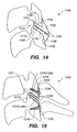 - FIG. 14 shows correction of cervical stenosis or other ailment with a further embodiment of the implant of the invention, comprising two facet implants with increased facet joint contact surfaces.