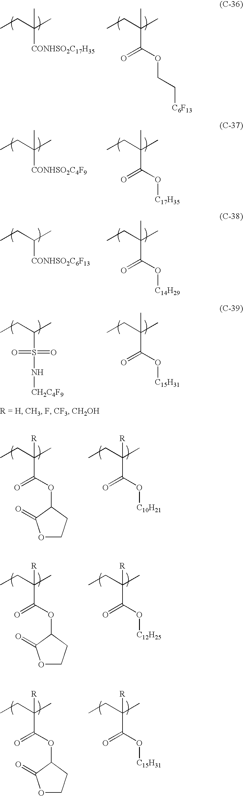 | US8426109B2 (en) * | 2004-07-07 | 2013-04-23 | Fujifilm Corporation | Positive type resist composition for use in liquid immersion exposure and a method of forming the pattern using the same |