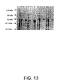 FIG. 13 shows SDS-PAGE and Coomassie Blue Staining analysis of the expression of the fusion proteins.