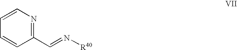 the groups R38 are the same or different and each is hydrogen or alkyl of 1 to 4 carbon atoms, preferably methyl, or two or three of the groups R36, together with the nitrogen to which they are attached, form a heterocyclic ring of from 5 to 7 atoms, or the three group R38 together with the nitrogen atom to which they are attached form a fused ring heterocyclic structure containing from 5 to 7 atoms in each ring.
