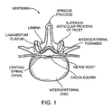 - FIG. 1 is a top view of a vertebra with the cauda equina (the bundle of nerves that extends from the base of the spinal cord) shown in cross section and two nerve roots branching from the cauda equina to exit the central spinal canal and extend through intervertebral foramina on either side of the vertebra.
