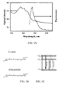 - FIG. 1 a illustrates the absorption spectrum of an excised, flat-mounted, human retina in the blue/green wavelength region, showing typical absorption characteristics of carotenoid macular pigment (solid curve at left) and the very weak fluorescence of macular pigment (solid curve at right) obtained when exciting them in their absorption band;