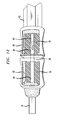 FIG. 8 is a view as in FIG. 6, with the inserted magazines shown in cross-section and a tap bit contained in a passage in the first magazine;