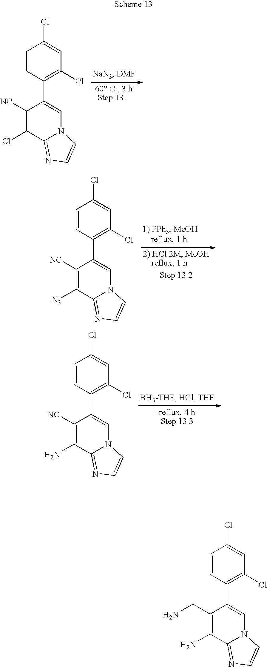 - BAZSTMLPFQESED-UHFFFAOYSA-N COCCC1=CN2C=C(C3=C(Cl)C=C(Cl)C=C3)C(CN)=CC2=N1.COCCN(C)C1=CN=C2C=C(CN)C(C3=C(C)C=C(C)C=C3)=CN12.Cl.Cl.Cl.Cl.NCC1=CC2=NC=C(N3CCS(=O)(=O)CC3)N2C=C1C1=C(Cl)C=C(Cl)C=C1.NCC1=CC2=NC=C(N3CCS(=O)CC3)N2C=C1C1=C(Cl)C=C(Cl)C=C1 Chemical compound COCCC1=CN2C=C(C3=C(Cl)C=C(Cl)C=C3)C(CN)=CC2=N1.COCCN(C)C1=CN=C2C=C(CN)C(C3=C(C)C=C(C)C=C3)=CN12.Cl.Cl.Cl.Cl.NCC1=CC2=NC=C(N3CCS(=O)(=O)CC3)N2C=C1C1=C(Cl)C=C(Cl)C=C1.NCC1=CC2=NC=C(N3CCS(=O)CC3)N2C=C1C1=C(Cl)C=C(Cl)C=C1 BAZSTMLPFQESED-UHFFFAOYSA-N 0.000 description 2