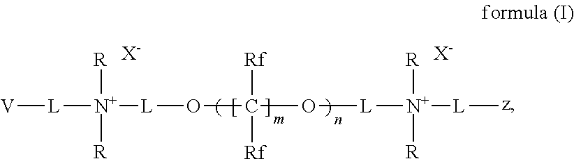 Fluorinated poly(ether)s end-capped with polymerizable cationic hydrophilic groups Download PDFInfo