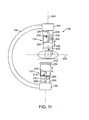 - FIG. 14 illustrates a fluoroscope C-arm with a radiation protection device wherein the first radiation shield and the second radiation shield act as counterweights to each other via a pneumatic or hydraulic connection system.