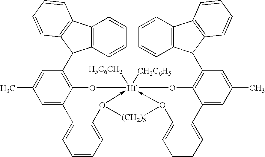 The term “multi-block copolymer” or “segmented copolymer” refers to a polymer comprising two or more chemically distinct regions or segments (referred to as “blocks”) preferably joined in a linear manner, that is, a polymer comprising chemically differentiated units which are joined end-to-end with respect to polymerized ethylenic functionality, rather than in pendent or grafted fashion. In a preferred embodiment, the blocks differ in the amount or type of comonomer incorporated therein, the density, the amount of crystallinity, the crystallite size attributable to a polymer of such composition, the type or degree of tacticity (isotactic or syndiotactic), regio-regularity or regio-irregularity, the amount of branching, including long chain branching or hyper-branching, the homogeneity, or any other chemical or physical property. The multi-block copolymers are characterized by unique distributions of both polydispersity index (PDI or Mw/Mn), block length distribution, and/or block number distribution due to the unique process making of the copolymers. More specifically, when produced in a continuous process, the polymers desirably possess PDI from 1.7 to 2.9, preferably from 1.8 to 2.5, more preferably from 1.8 to 2.2, and most preferably from 1.8 to 2.1. When produced in a batch or semi-batch process, the polymers possess PDI from 1.0 to 2.9, preferably from 1.3 to 2.5, more preferably from 1.4 to 2.0, and most preferably from 1.4 to 1.8.
