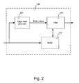 Buffer 210 may include a memory to store a number of blocks of video data while (e.g., before, during, etc.) edge filtering is being performed. Buffer 210 may include, for example, synchronous or asynchronous random access memory (RAM). In some implementations, buffer 210 may be sized to accommodate about a macroblock (e.g., 8×8, 4×8, 8×4, 4×4 blocks) of video data. In some implementations, buffer 210 may be sized to accommodate more than a macroblock of video data. For example, buffer 210 may also include space to store one or more blocks that are adjacent to a macroblock, such as a 6×6 block arrangement that will be described in greater detail below with regard to FIGS. 3A and 3B. In some implementations, buffer 210 may accommodate yet more data, such as two or more macroblocks.
