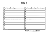 - FIG. 6 is a table illustrating and example of the awards provided to a player for each play of the free spins bonus event.
