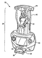 Referring to FIG. 3, the base 40 can be provided with a battery compartment accessed by a battery cover 64. Conventional batteries 66 (see FIG. 5) can be housed inside the battery compartment, and coupled to the electronics to power the operation of the doll station 24.