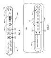 FIG. 6 is a front view of an exemplary device, this view of the housing showing the device connections;