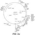 FIGS. 2A-2C illustrate restriction maps of the vector constructs pBNX51 (FIG. 2A), pBNX67 (FIG. 2B), and pBN27 (FIG. 2C), comprising about 600 bp of MVA sequences flanking the insertion site after the ORF 137L (Flank 1: F1 136-137 corresponds to position 129340-129930 of the MVA genome; Flank 2: F2 136-137 corresponds to position 129931-130540 of the MVA genome).