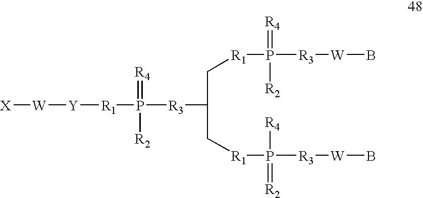 wherein each X and Y is independently O, S, N, alkyl, substituted alkyl, or alkylhalo; wherein each Z and W is independently O, S, N, alkyl, substituted alkyl, O-alkyl, S-alkyl, alkaryl, aralkyl, or alkylhalo; and wherein W, X, Y and Z are not all O.