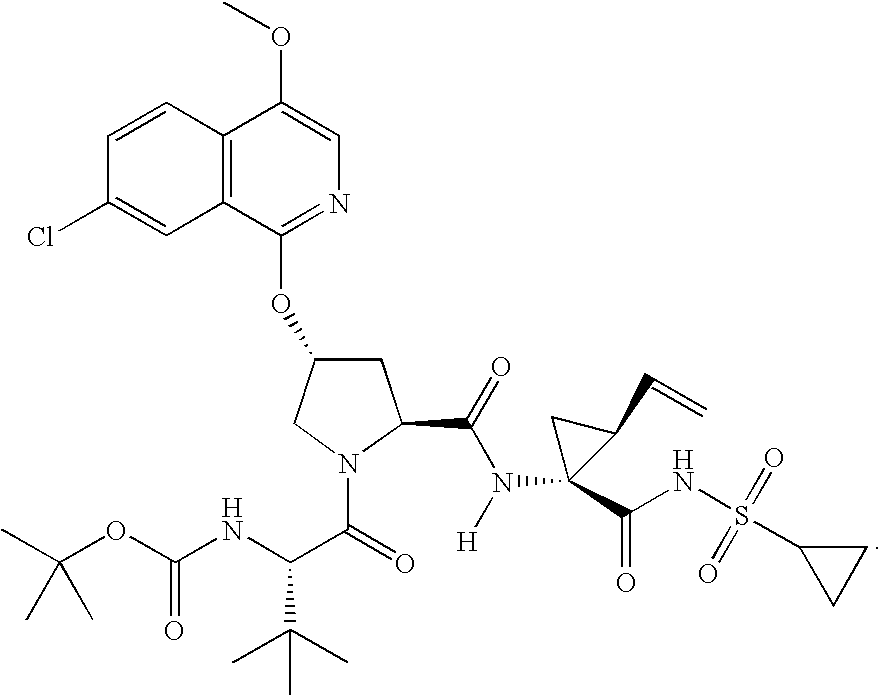 US8202996B2 - Crystalline forms of N-(tert-butoxycarbonyl)-3-methyl-L-valyl-(4R)-4-((7-chloro-4-methoxy-1-isoquinolinyl)oxy)-N- ((1R,2S)-1-((cyclopropylsulfonyl)carbamoyl)-2-vinylcyclopropyl)-L-prolinamide - Google Patents