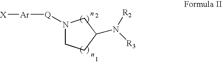 “Heterocycle” refers to a saturated or unsaturated group having a single ring or multiple condensed rings, from 1 to 8 carbon atoms inclusively and from 1 to 4 hetero atoms inclusively selected from nitrogen, sulfur or oxygen within the ring. Such heterocyclic groups can have a single ring (e.g., piperidinyl or tetrahydrofuryl) or multiple condensed rings (e.g., indolinyl, dihydrobenzofuran or quinuclidinyl). Preferred heterocycles include piperidinyl, pyrrolidinyl and tetrahydrofuryl.