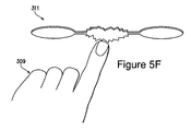 When hand 309 initially makes contact with control 301, as depicted in FIG. 3B, block portions 307A-307L exhibit the same color as in FIG. 3A. Block portion 307A then changes color, followed in series by block portions 307B-307D, as depicted in FIG. 3C. If the user remains in contact with control 301, then block portions 307E-307H will successively change color to continue the animated rendering, as depicted in FIG. 3D. If the user continues to remain in contact with control 301, then block portions 3071 and 307J will successively change color, as depicted in FIG. 3E. Finally, if the user continues to remain in contact with control 301, then block portions 307K and 307L will successively change color, as depicted in FIG. 3F, so that each of block portions 307A-307L have changed color through the animated rendering. Following a color change in each of block portions 307A-307L, the software application exits. Hand 309 is utilized in this example as the physical object that contacts control 301 and initiates the animated rendering. In further configurations of the invention, other physical objects (e.g., elbows, hands, stylus pens, blocks, etc.) may be used as physical control members that provide input to device 200 or otherwise contact control 301.