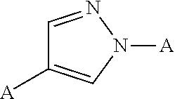 - 1) an alkyl group as defined above, having 1, 2, 3, 4 or 5 substituents, preferably 1 to 3 substituents, selected from the group consisting of alkenyl, alkynyl, alkoxy, cycloalkyl, cycloalkenyl, acyl, acylamino, acyloxy, amino, aminocarbonyl, alkoxycarbonylamino, azido, cyano, halogen, hydroxy, keto, thiocarbonyl, carboxy, carboxyalkyl, arylthio, heteroarylthio, heterocyclylthio, thiol, alkylthio, aryl, aryloxy, heteroaryl, aminosulfonyl, aminocarbonylamino, heteroaryloxy, heterocyclyl, heterocyclooxy, hydroxyamino, alkoxyamino, nitro, —SO-alkyl, —SO-aryl, —SO-heteroaryl, —SO2-alkyl, SO2-aryl and —SO2-heteroaryl. Unless otherwise constrained by the definition, all substituents may optionally be further substituted by 1, 2, or 3 substituents chosen from alkyl, carboxy, carboxyalkyl, aminocarbonyl, hydroxy, alkoxy, halogen, CF3, amino, substituted amino, cyano, and —S(O)nR, where R is alkyl, aryl, or heteroaryl and n is 0, 1 or 2; or