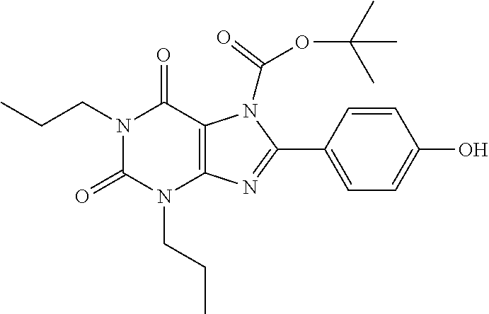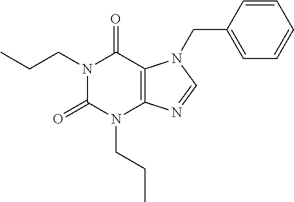 - 1-propyl-8-[1-benzylpyrazol-4-yl]-1,3,7-trihydropurine-2,6-dione;