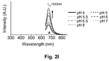 FIGS. 1A-1H and FIGS. 2A-2I depict spectral properties of 30 μM SNAFR-2 in 50 mM phosphate buffer with 0.25% DMSO at various pH values.