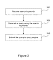 FIG. 2 is a flowchart illustrative of how the front end 15 processes user-provided search keywords in accordance with some embodiments. After receiving the search keywords (201), the front end 15 generates a search query using the search keywords (203). Depending on the type of data to be processed by the search server 20, the search query can be written in different query languages such as structured query language (SQL) for relational databases or XQuery for XML data sources. The front end 15 then submits the search query to the query engine 30 within the search server 20 (205) for further processing.