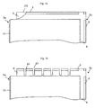 - the locking systems are designed such that fibres could be compressed and/or the strip could bend downwards during connection of two adjacent edges. Such locking system could be used to connect two adjacent short edges vertically and horizontally by a combined vertical and horizontal displacement.