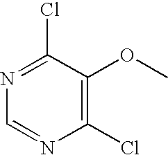 A suspension of 5-methoxypyrimidine-4,6-diol (96.0 g, 676 mmol) and triethylamine (95.0 mL, 680 mmol) in anhydrous toluene (1.2 L) was heated to 100-105° C. and a solution of POCl3 (140 mL, 1.5 mol) in anhydrous toluene (200 mL) was added over 30 min. The mixture was refluxed for 1 h and cooled to ambient temperature. The toluene layer was decanted and ice was added. The dark, heavier layer was separated, more ice was added, and the mixture was extracted with toluene (2×200 mL). The toluene extracts were combined, and the aqueous layer was discarded. The organic extract was then washed with saturated NaHCO3 (2×300 mL), brine (400 mL), dried over MgSO4, and concentrated to give the title compound (103.4 g, 86% yield) as a white solid. 1H NMR (CDCl3) δ 4.00 (s, 3H), 8.55 (s, 1H).