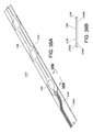 FIGS. 38A and 38B depict a flexible electrode assembly strip 247. The flexible electrode assembly strip includes a flex circuit or electrode assembly strip 188, 236 pressed into the substrate 246 of a flexible polymeric material, such as any of the above-described materials for the spline tube 172 or the spline tube assembly 185. The flex circuit or electrode assembly strip 188, 236 may also be thermally, compressively and/or adhesively bonded onto or into the substrate 246. While the substrate 246 is depicted as being a strip or being planar, the present invention is not so limited. The substrate could be tubular with or without an open lumen. As depicted in FIG. 38B the electrode assembly strip 188, 236 is pressed into the substrate wall 246 b while leaving a substantially smooth upper surface 246A and lower surface 246C. If desired portions of the flex circuit 188, 236, for example those portions not containing electrodes, may be disposed between multiple two or more substrates 246, either in planar or tubular form. When covering the electrodes with a cover or substrate of polymeric material, it is desirable to remove cover or substrate material so that the electrodes 186 remain exposed.