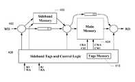 - the control logic includes a tags memory that identifies the memory bank in the main memory to which each of the entries in the sideband memory corresponds.