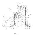 The links 34 and 33 are elongate members that extend from the pivotable connections 44 and 39 to the pivotable connections 68 and 73 of the second portions 50 and 45 of the lever assemblies 22 and 21, respectively. The links 34 and 33 extend generally adjacent to the opposite side of the main rotating structural members 16 and 17 from that of the arms 24 and 23. The links 34 and 33 will generally move relative to the movement of the main rotating structural members 16 and 17. The braces 36 and 31 are pivotally connected to the small frame members 46 and 41 associated with the main rotating structural members 16 and 17. The braces 36 and 31 are also pivotally connected at a location along the arms 24 and 23 between the ends of each. Braces 36 and 31 provide structural support to the arms 24 and 23 and also facilitate the desired movement of the arms 24 and 23 during the movement of the tubular 18 between the horizontal orientation and the vertical orientation.