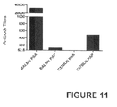 FIG. 11. Anti-PSA and anti-PAP antibody responses induced in BALB/c or C57BL/6 mice. Male BALB/c and C57BL/6 mice (5 animals in each group) were immunized on days 1, 15, and 29 with 5×107 TCID50 of MVA-BN-PRO. Blood samples were collected on day 42, and serial dilutions of pooled sera were analyzed for the presence of anti-PSA or anti-PAP IgG by ELISA. Titers were calculated as the reciprocal value of the last dilution with an O.D. at least 2-fold higher than background (defined as serum at the same dilution from TBS treated animals). Data points for sera with titers below the lowest dilution tested (<125) were arbitrarily placed on the x-axis positioned one dilution below the first dilution of the assay (62.5) for graphing purposes.