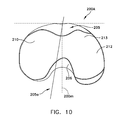 - the lateral anterior/posterior dimension 209 represents the distance between the anterior-most point 230 along the periphery of the tibial insert and a point that is the posterior-most point 232 along the periphery of the lateral portion of the tibial insert.