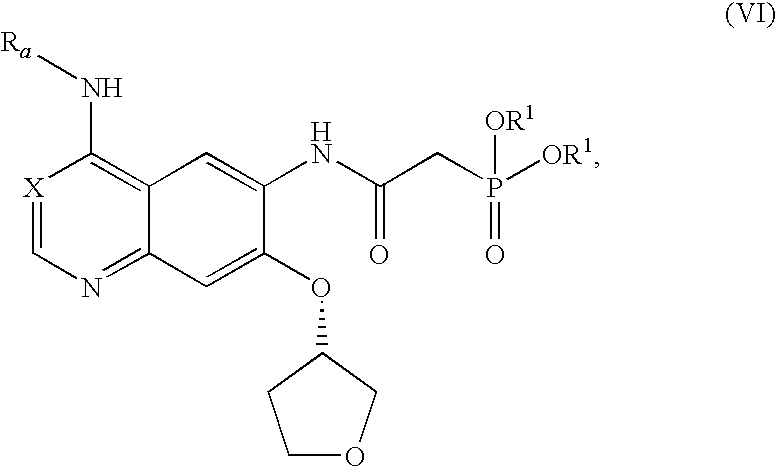 - aminocrotonyl compounds (IV) such as for example 4-[(3-chloro-4-fluorophenyl)amino]-6- ⁇ [4-(N,N-dimethylamino)-1-oxo-2-buten-1-yl]amino ⁇ -7-((S)-tetrahydrofuran-3-yloxy)-