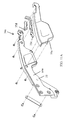 To limit the travel of arms 34 a and 34 b, transverse member 38 is also coupled to a linkage assembly with a link 58 (FIGS. 12 and 13) and a guide plate 60, which is pivotally mounted to frame 36. Plate 60 includes a lobe-shaped opening 62 through which a guide pin 64 extends, which defines the upper and lower limits of the motion of arms 34 a, 34 b. Additionally, to provide further control over the movement of arms 34 a and 34 b, a second slotted guide link 66 (FIG. 14) may be provided that is pivotally mounted on one end to frame 36 by a pivot pin 66 b and to transverse member 38 at its opposed end by a guide pin 66 a.