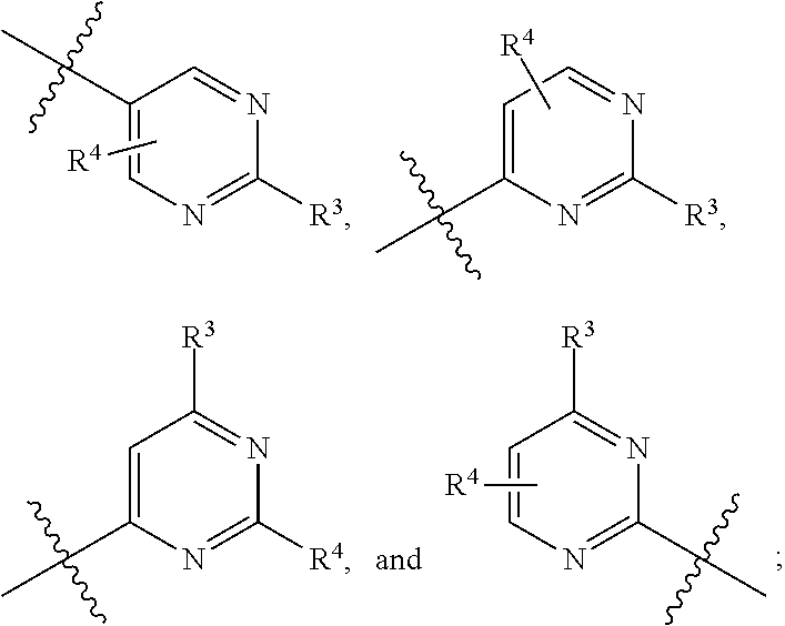 Monovalent partially unsaturated heterocycles typically contain from 3 to 10 total ring atoms, of which 2 to 11 are ring carbon atoms, and 1 to 3 are ring heteroatoms, and include, for example —C3-5heterocycle and —C2-12heterocycle. Representative monovalent partially unsaturated heterocycles include, by way of example, pyran, benzopyran, benzodioxole (e.g., benzo[1,3]dioxol-5-yl), tetrahydropyridazine, 2,5-dihydro-1H-pyrrole, dihydroimidazole, dihydrotriazole, dihydrooxazole, dihydroisoxazole, dihydrothiazole, dihydroisothiazole, dihydrooxadiazole, dihydrothiadiazole, tetrahydropyridazine, hexahydropyrroloquinoxaline, and dihydrooxadiazabenzo[e]azulene. In some instances, moieties may be described as being taken together to form a partially unsaturated —C3-5heterocycle. Such groups include: