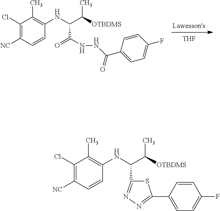 - IRQSJYNSCUUHOV-CLLKRMJBSA-N C1CCOC1.CC1=C(Cl)C(C#N)=CC=C1N[C@@H](C(=O)CNC(=O)C1=CC=C(F)C=C1F)[C@@H](C)O.CC1=C(Cl)C(C#N)=CC=C1N[C@@H](C1=NN=C(C2=CC=C(F)C=C2F)O1)[C@@H](C)O Chemical compound C1CCOC1.CC1=C(Cl)C(C#N)=CC=C1N[C@@H](C(=O)CNC(=O)C1=CC=C(F)C=C1F)[C@@H](C)O.CC1=C(Cl)C(C#N)=CC=C1N[C@@H](C1=NN=C(C2=CC=C(F)C=C2F)O1)[C@@H](C)O IRQSJYNSCUUHOV-CLLKRMJBSA-N 0.000 description 1